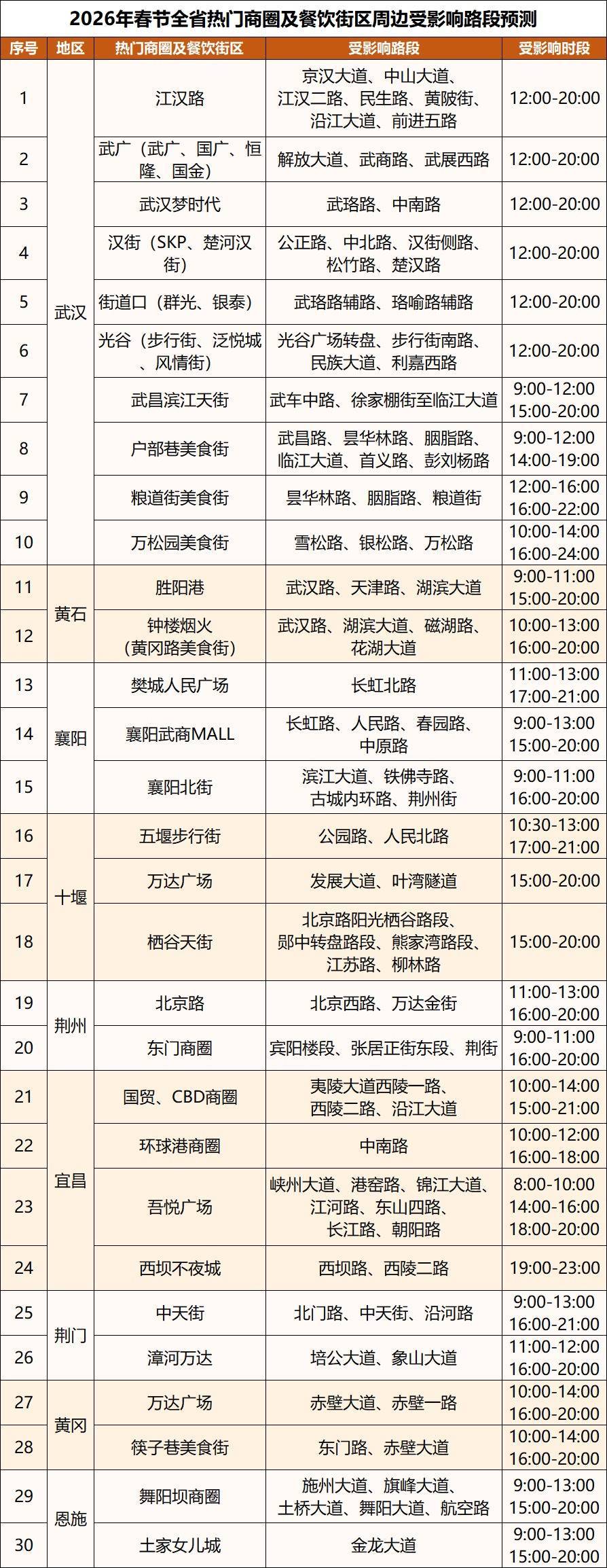 预计今年春节期间出行拥堵集中在节中2月19日至22日(正月初三至初六),节后2月24日至26日(正月初八至初十)、3月4日(正月十六),拥堵时段主要集中在每日的9时至11时、13时至15时。