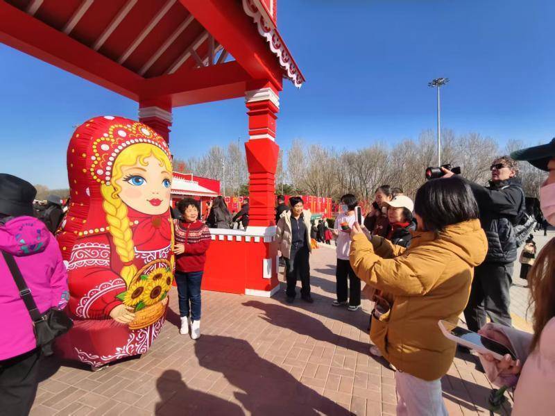 2月19日至22日,朝阳公园化身充满莫斯科风情的节庆集市。现场搭建了原汁原味的俄式木屋、艺术装置与主题打卡点。互动体验区内,游客可在手作工坊里体验稻草娃娃制作,绘制套娃、木勺、木马等传统工艺品;俄罗斯航空展区还设有抽奖与互动拍照环节,吸引不少市民游客踊跃参与。